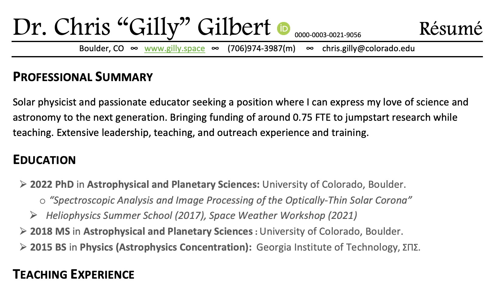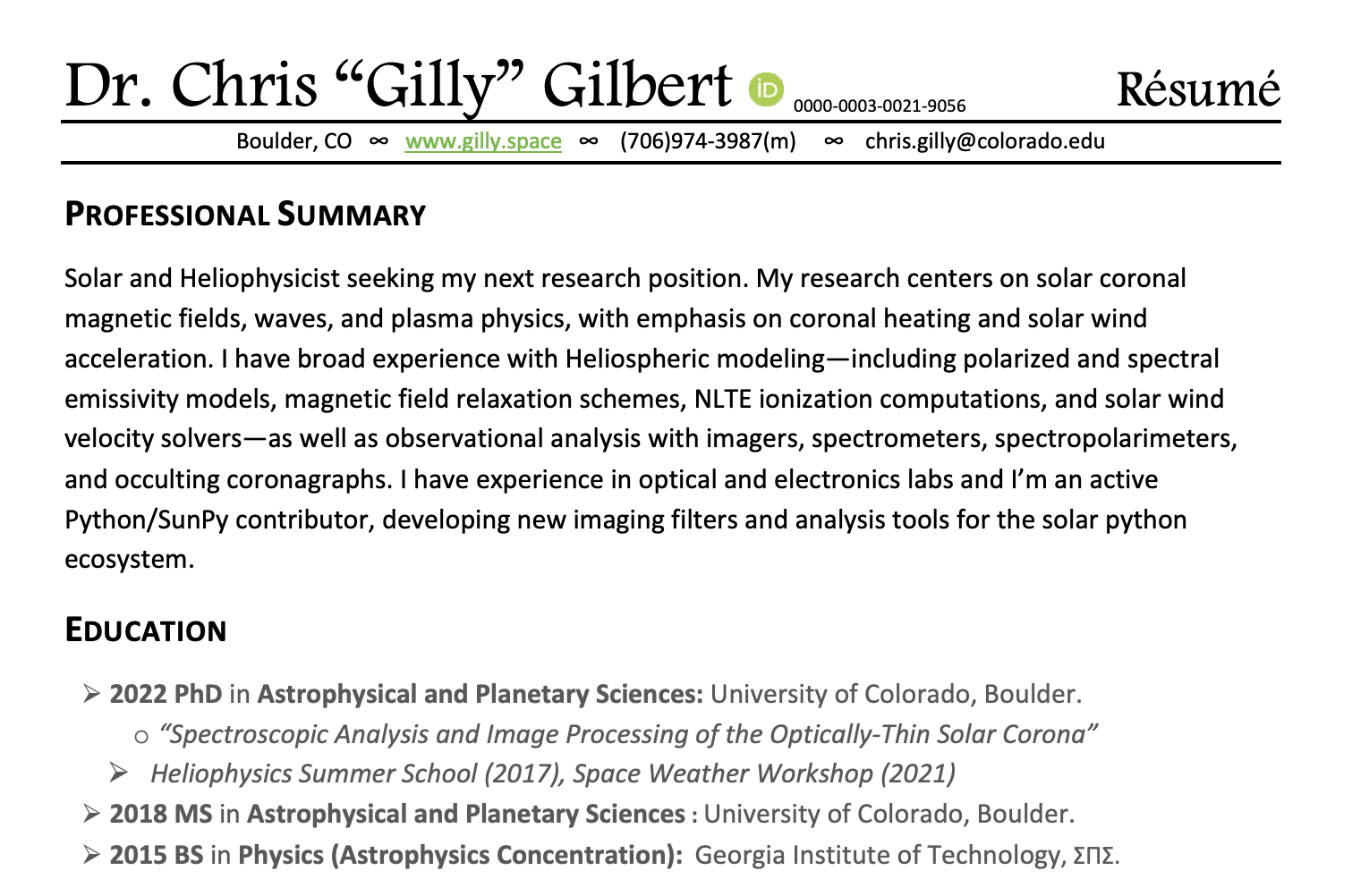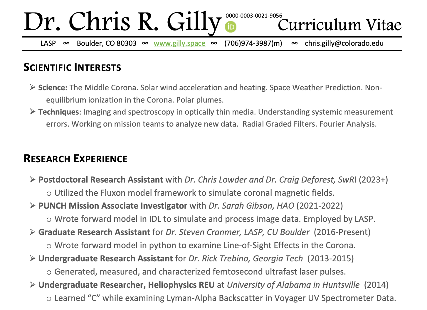 My name is Gilly, and I work at the Southwest Research Institute (SwRI) in Boulder, CO. Check out my CV below for more information about my work and experience! I am honored to be one of the Co-Investigators for the PUNCH mission, as well as serving as the AGU SPA Webmaster (website).